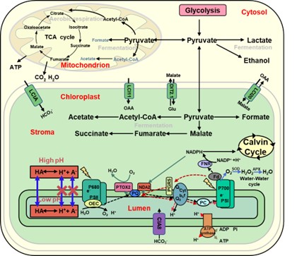该研究阐释了光合生物中无氧发酵影响光合作用和呼吸作用的新机制,对于探索光合作用、有氧呼吸和无氧呼吸之间的化学偶联,理解光合生物基本生理过程及优化植物生长和固碳能力具有重要意义。