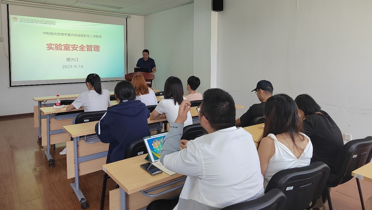 9月14日,光生物学重点实验室成功召开了2023年度新生入学、新职工入职教育培训。重点实验室主任林荣呈,副主任杨文强,仪器平台主管唐为江以及重点实验室秘书季红英,分别从科学家精神与科研诚信、研究生学习与科研规划、实验室安全及研究生培养管理环节等方面做了报告。实验室新生、新职工等共计20余人参加。