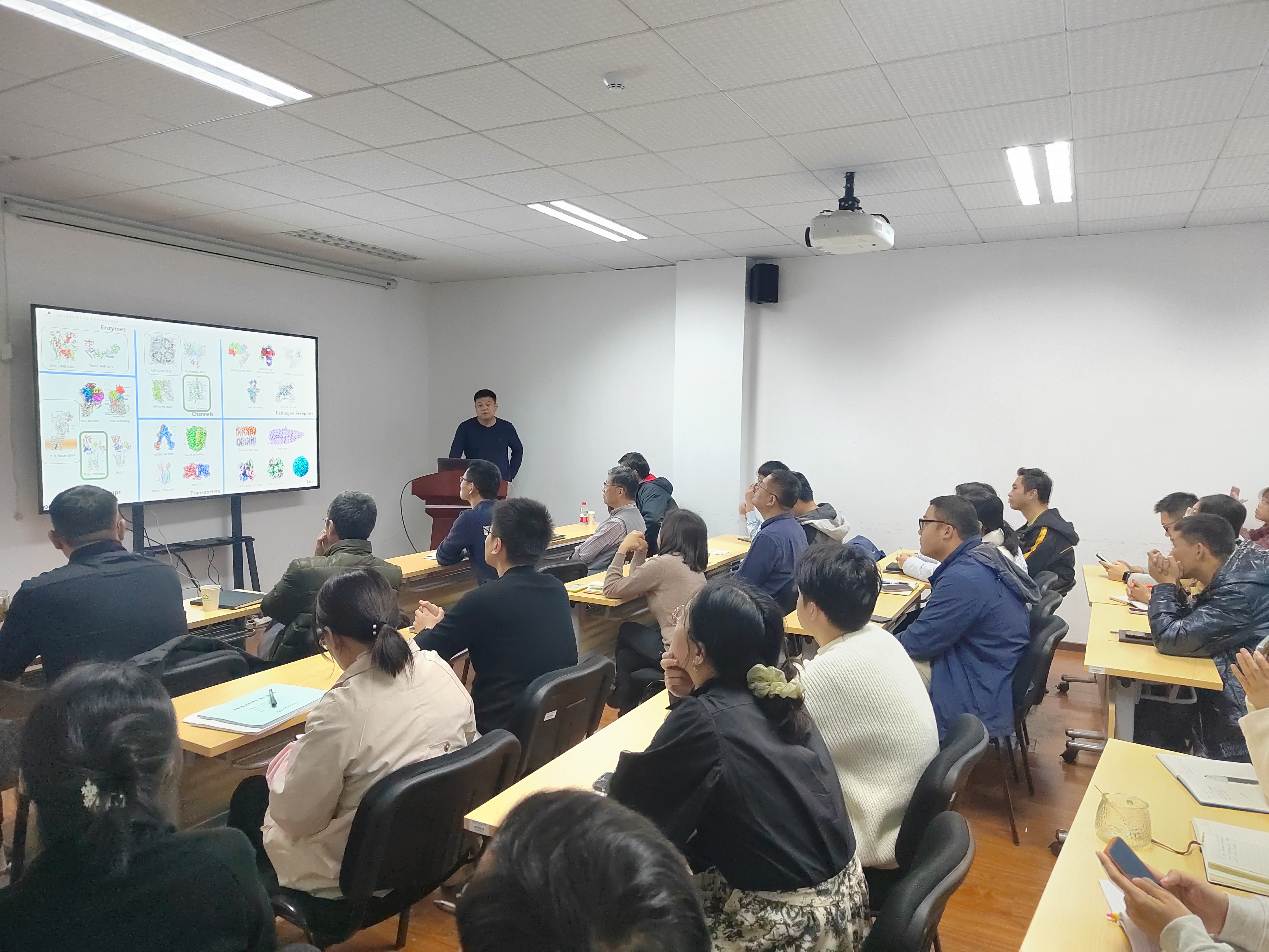 王开拓博士长期从事跨膜蛋白结构生物学研究,利用X-射线晶体学和冷冻电镜方法解析了多种重要膜转运蛋白,通道蛋白和受体蛋白的高分辨率结构,包括P-型ATP酶,水通道蛋白,氯离子通道蛋白,ABC-转运蛋白,TRP通道蛋白,疟疾红细胞表面受体蛋白等。本次报告以“结构生物学与植物研究结合的新策略:ex vivo structural proteomics”为题,介绍了他的团队探索并发展了的从普通植物材料中并行获取高分辨结构信息的方法和可行流程。报告结束后,参会师生展开了热烈的讨论与交流,王开拓博士耐心详细地解答了师生们的踊跃提问,并进一步就学科领域相关研究达成合作意向。