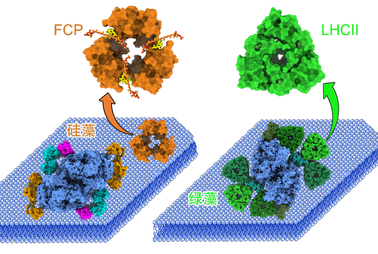 硅藻与绿藻光系统II和FCP/LHCII三聚体对比