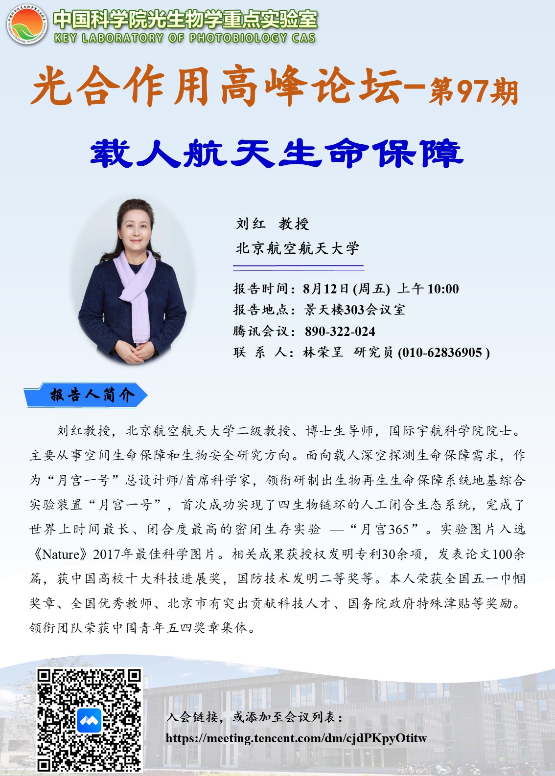 8月12日,光合作用高峰论坛之九十七:载人航天生命保障
