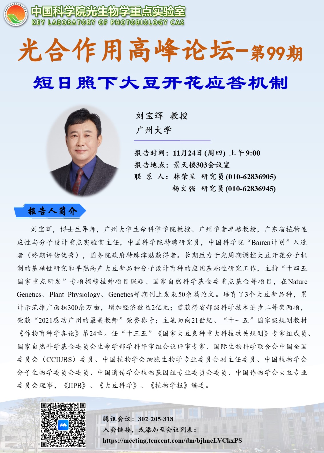 11月24日,光合作用高峰论坛之九十九:短日照下大豆开花应答机制